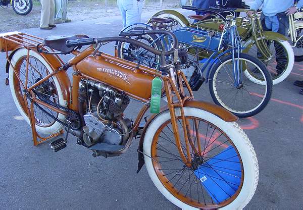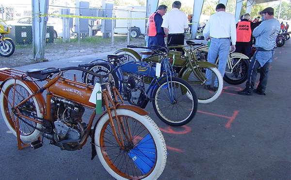 The weather was great after the Thursday rain, 75-80 degrees Friday thru Sunday. A lot of vendors and a lot of shoppers. Seems a lot of new bike riders coming from Daytona the last couple years, advertising paying off. Sad to say, not many real old bikes riding around. Indians and Knuckles and Pans are great but I love to see the pre '30 bike running around. One old Indian racer with paper covering the tires and no sign of exhaust in the pipes. I got tired just watching the guy CARRY it around. Probably looks good in the living room though. Get out the lemon pledge, theres dust on my bike.