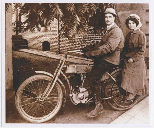 As for s/n 1872, it exhibits all the features of 1908. It has the ribbed fenders, fuel filler in front, rounded tanks, later sager fork, and exhaust cutout.