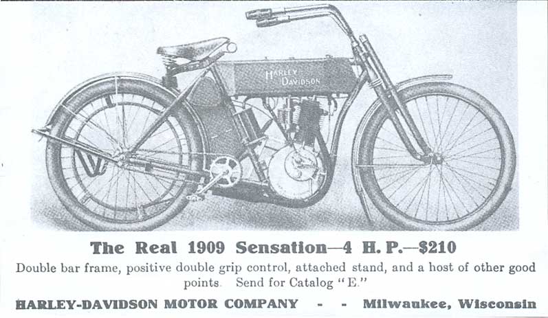 This one is from a 1909 American Exporter magazine and shows a 1909 HD advertisment.
