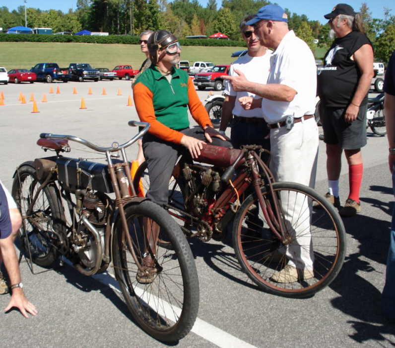 Bruce Linsday brought two bikes. One was a 1907 Curtiss single that Joe Gardella "brilliantly" rode to victory. Joe won by about a quarter mile and that was after getting a bad starting position.