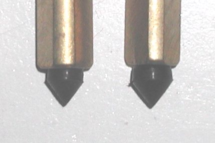 I have a new needle and seat in an M-88 with the brass float (doesn't leak) set at 3/8". I found fuel leaking from the bowl vent, and looked at the rubber needle with a 10X lens to find that it wasn't cut correctly. It looks like a pencil that was held in the sharpener sideways. Cut high on one side and low on the other.