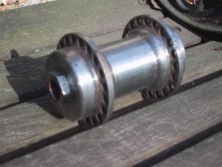 Anybody knows where this came from? It does not have a grease nipple. It is for a 40-hole rim. It came with a 21" B Single basket, but it is not for that, nor JD. Could be a Scout, they were common back then.