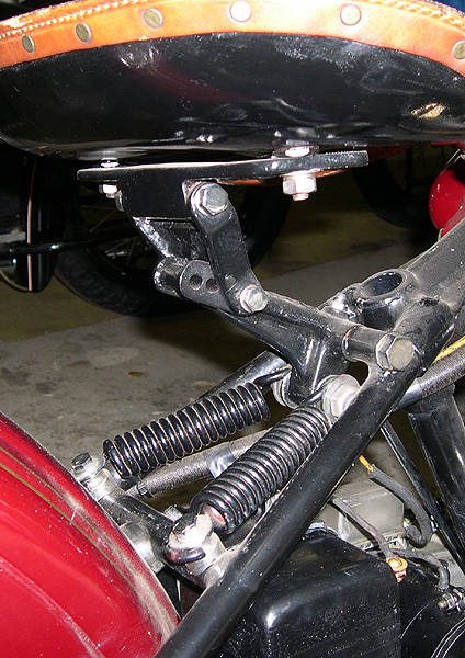 This set-up is on approx. "six" late model survivors. Read RARE. I think it's pretty neat, and makes me wonder how the ride is. I bet it takes alot of wracking stress off the front pivot point. Kinda reminds me of a Brough rear susspention.