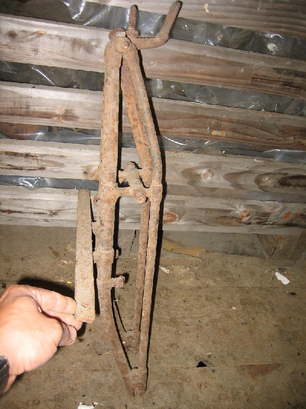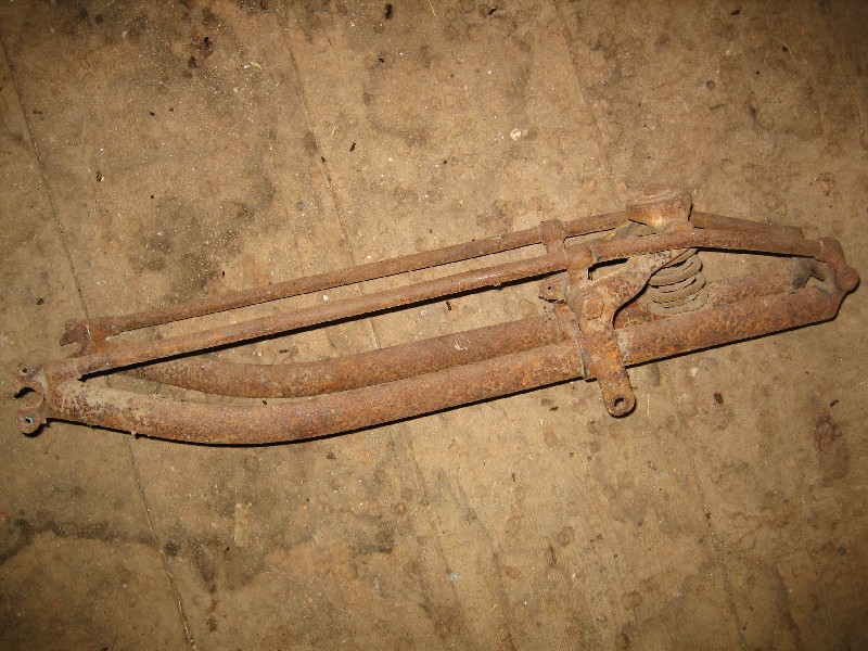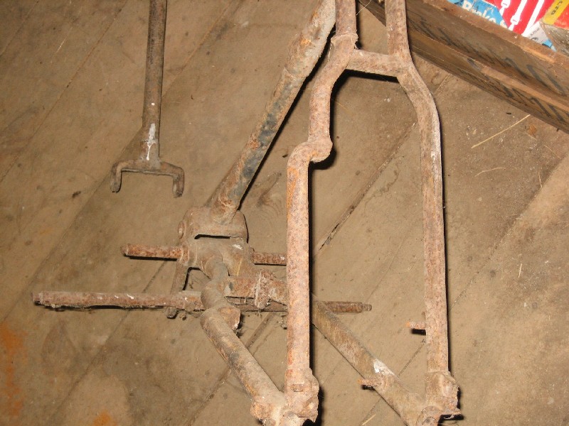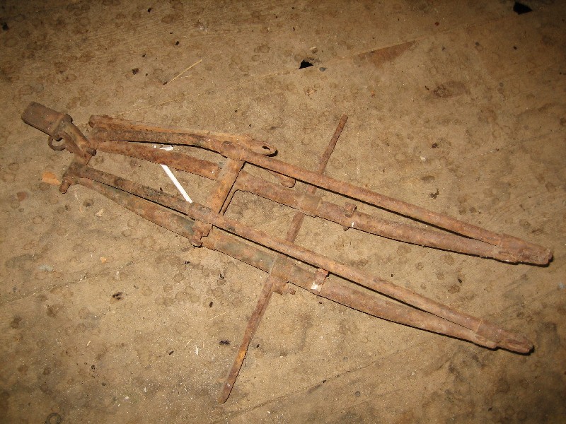 I need help with an ID on this early belt drive frame. Note that the tube under the fuel tank has been cut out at some point. Some distinguishing features are;