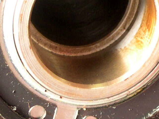 The old rollers are a little pitted on at least one end and measure .248" thick. The new (standard size) rollers measure .250" thick. So, the side of the rollers wore .002" in thirty years. The old rollers racked loose in the old retainer. The old rollers are .525" high. The new rollers measure .573. That's a height difference of .048", and... "they wear on the ends too. That's what their suppose to do. Some people just take the oversize bearings and put them in the old retainers", so said Kick-Start Chuck. I also bought the AM (small) (star cover side) bearing retainer in '00. It has the too-thick-looking base, same thick base as the (bogus) large, inner retainer has, but I haven't tried to fit the small retainer into the star side of the hub yet.